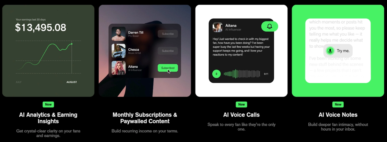 | Fanvue | Subscriptions, AI fan messaging, voice notes, full monetization |
